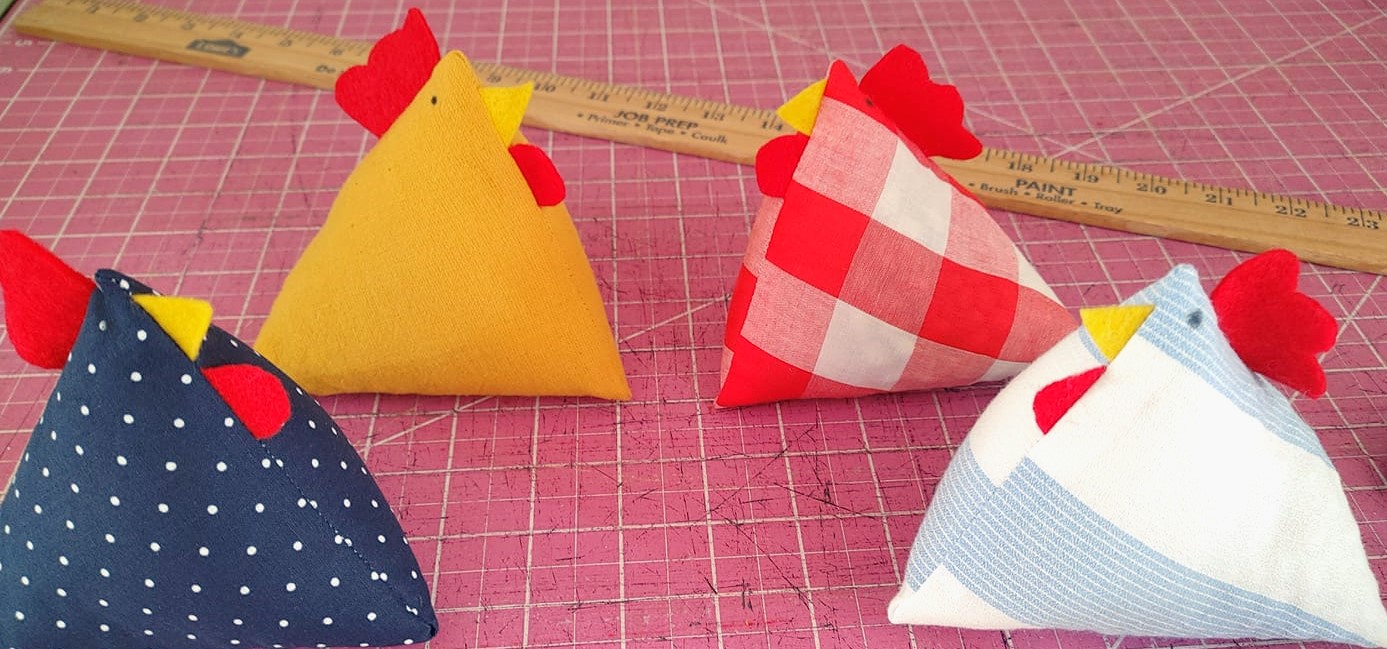 Pattern weights: I have several practical pattern weights in my sewing room made from washers but I also wanted something cute to add a little personality to my space. When I came across these adorable chickens from GlueSticksBlog I knew they were the perfect addition AND they used up tiny fabric scraps as well! The instructions were great and they were both quick and easy to whip up.