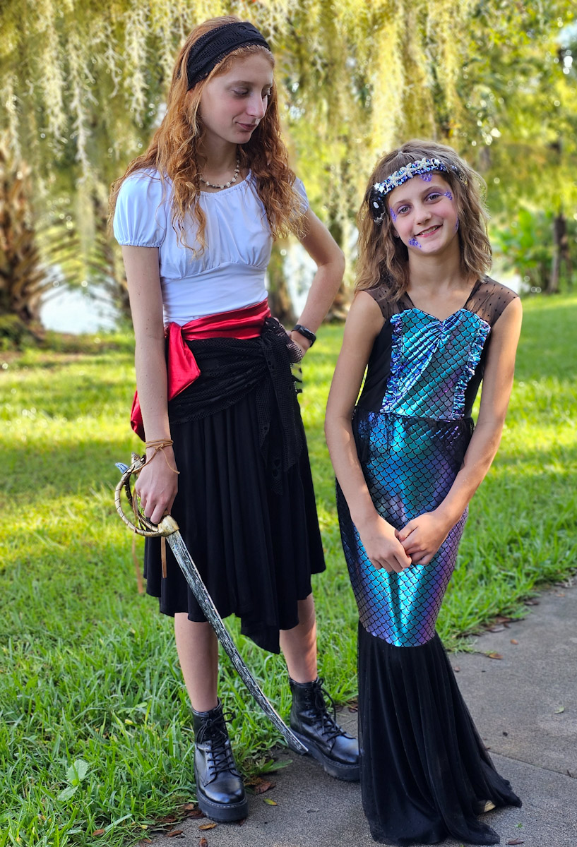 My family does themed Halloween costumes every year and our kids wanted to be pirates and mermaids this year!  I am so excited to share these makes with you all! This was such a fun (and easy!) theme to bring to life with my kids.