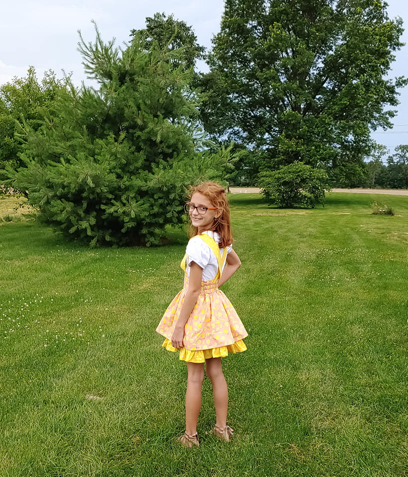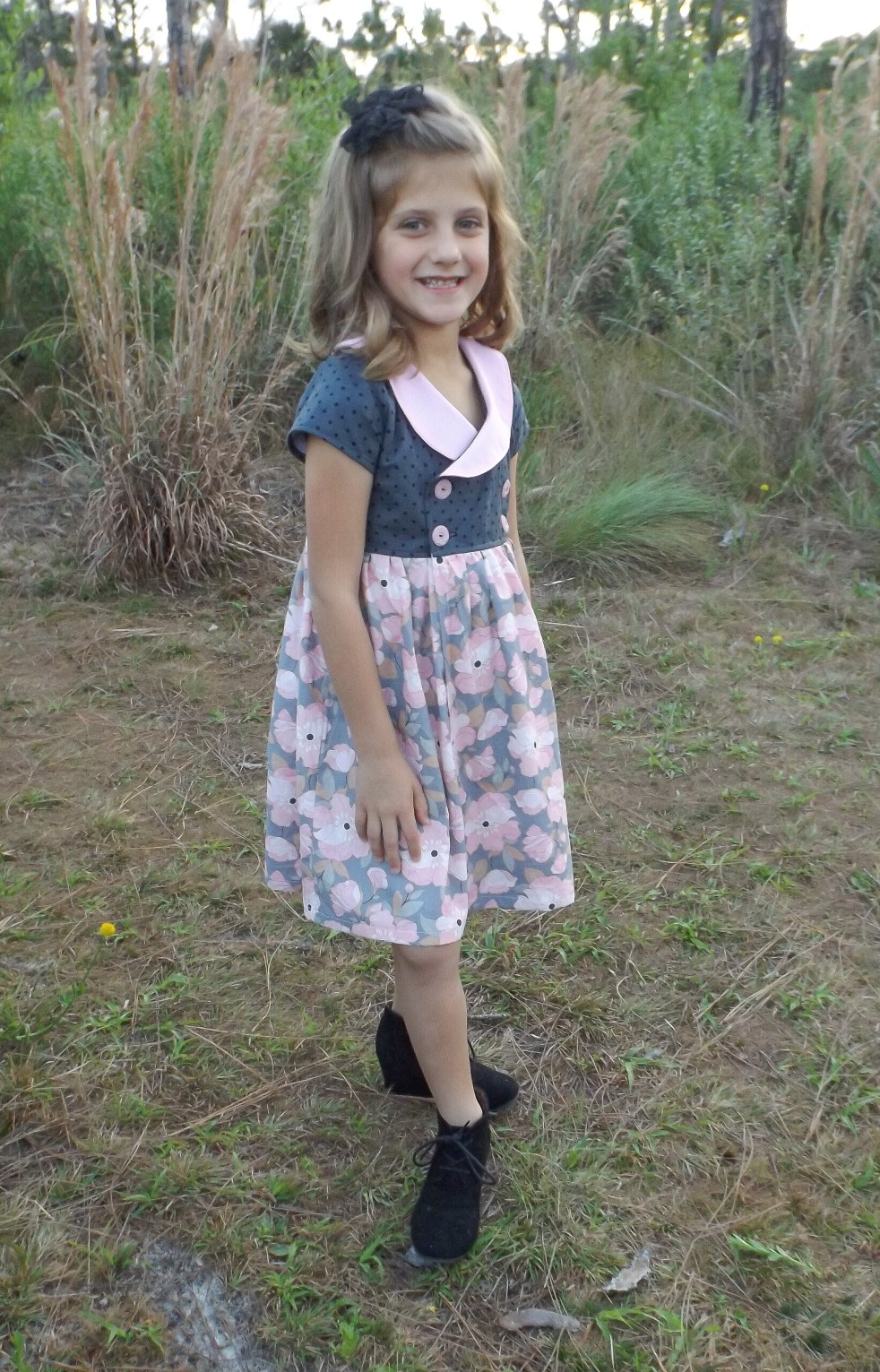 Shelly’s Tiered Collar Wrap Dress and Top is one of these new patterns and it is packed with options. The sizing runs from 2T up to size 12 with dress or top length options, tiered or simple skirt (gathered or circle), multiple sleeves and an optional collar. I sewed up the dress with the collar, simple gathered skirt and short sleeves in a size 6. My daughter’s measurements fell into size 6 in all areas so there were no size modifications needed. The fit is perfect on her and great for transitioning from Winter to Spring in this South Florida weather. The tiered skirt option is also beautiful and we will be trying that one next!